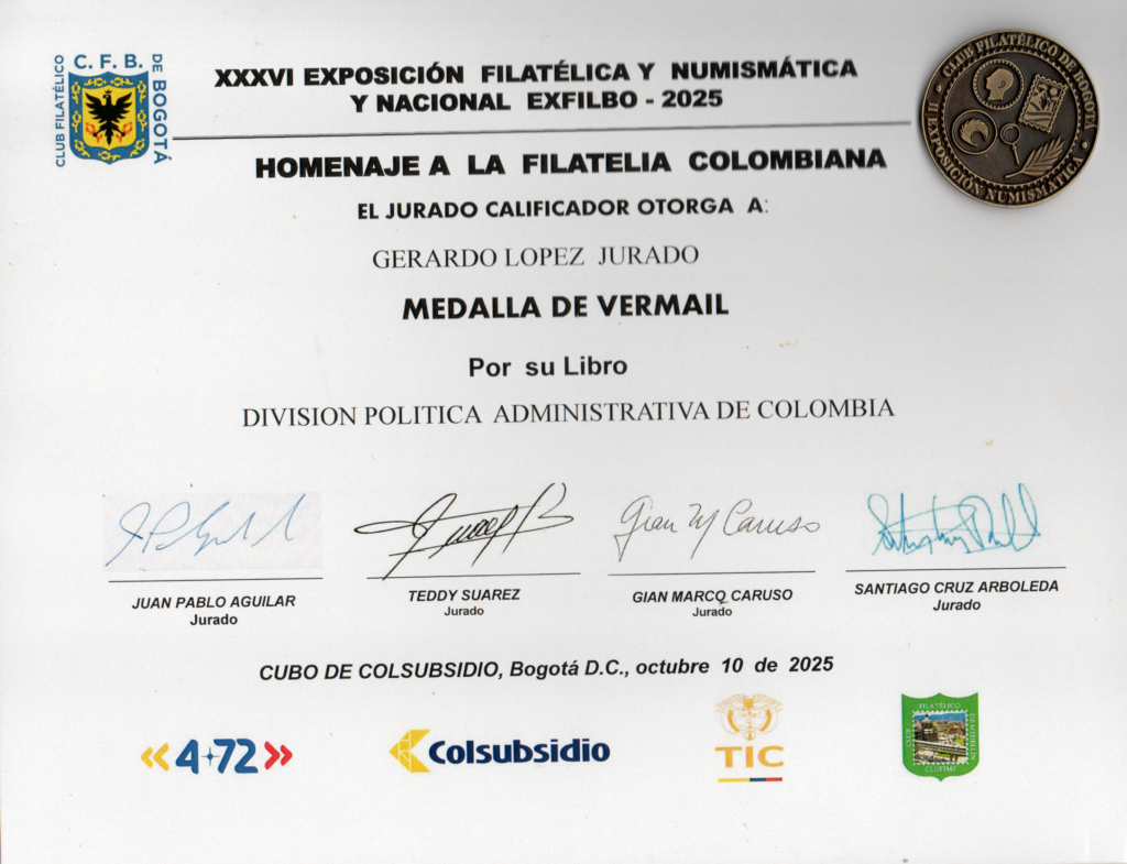 Las Colecciones Filatélicas estuvieron divididas en las siguientes clases: Clase Oficial, Clase fuera de Concurso, Clase no competitiva y Clase en Competencia.  La Colección de AFITECOL (Amigos de la Filatelia Temática en Colombia) estuvo inscrita en esta última Clase, y participó con 10 marcos con el título “División Política Administrativa de Colombia”, donde obtuvo una Medalla Vermeil.