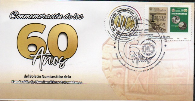 En este año 2025 se celebró el 60° aniversario del Boletín Numismático de Colombia, destacando su contribución a la difusión del conocimiento con una emisión postal.