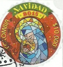 En este año Colombia ha querido hacer un homenaje a dos protagonistas especiales de este acontecimiento: la Virgen María y el Niño Jesús, según la tradición católica, con una emisión postal muy especial, por la técnica y los materiales utilizados.