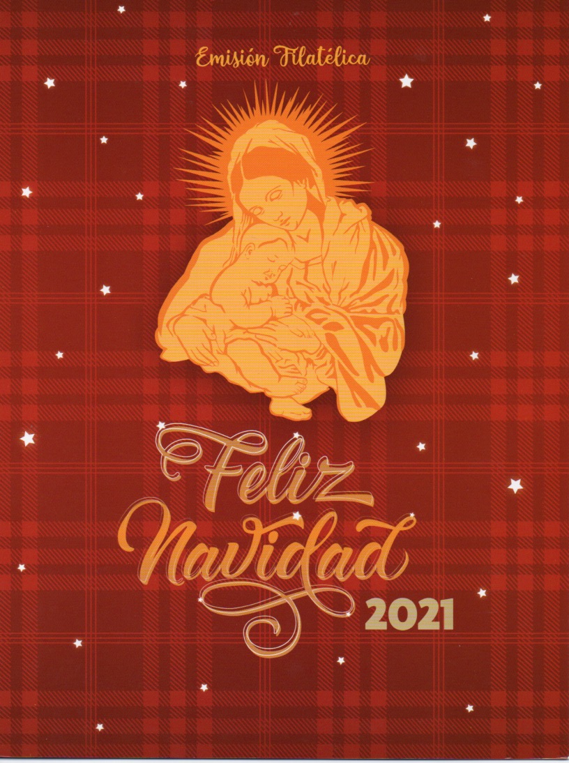 La estampilla tiene como imagen a la Virgen María y el Niño Jesús, en alto relieve, con la Leyenda Feliz Navidad 2021.