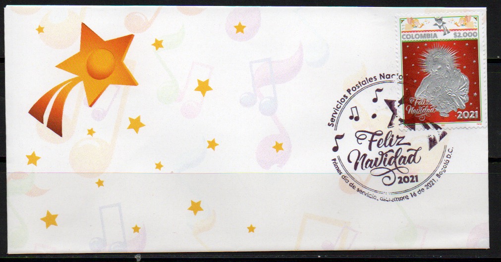 El sobre de primer día. Se imprimieron 290 sobres numerados de primer día de servicio, siendo éste el 16 de diciembre de 2021 y matasellado en la ciudad de Bogotá D. C., Colombia.