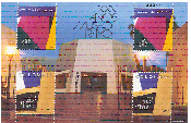 La hoja bloque. La hoja bloque contiene 18 estampillas, en tres motivos.