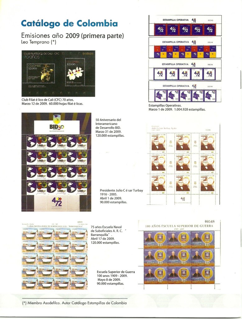 La Revista Filatelia Nº 19 trae además las secciones regulares: Emisiones Colombianas; Noticias Asodefilco, con la responsabilidad de María Cristina González, Secretaria de Asodefilco; Entretenimiento Asodefilcograma Nº 19 a cargo de Maurice Borda Miembro de Asodefilco y el Catálogo de Colombia, correspondiente a la primera parte del año 2009, a cargo de Leo Temprano, Miembro de Asodefilco y autor del Catálogo Estampillas de Colombia.